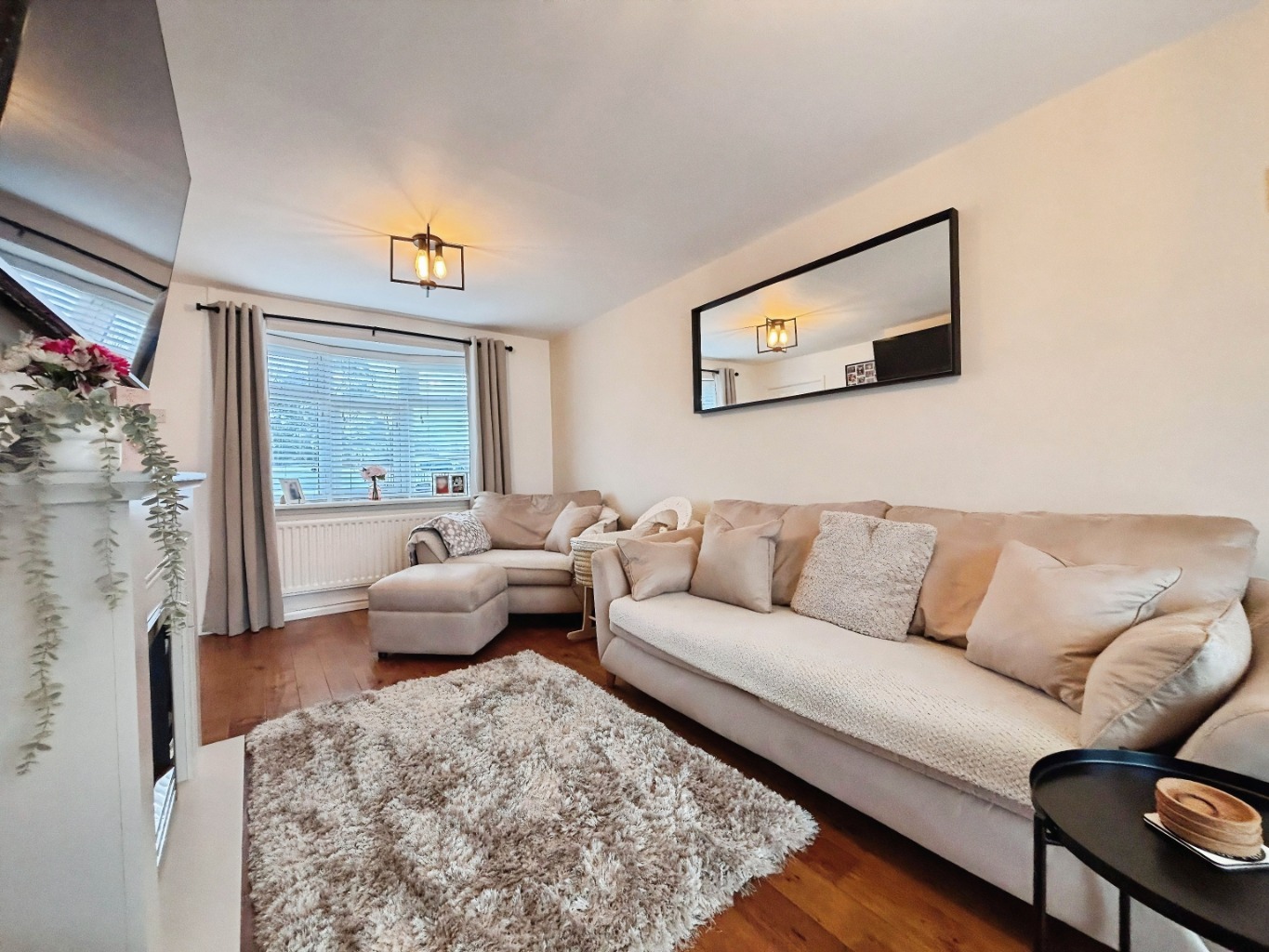 Upon entering the property, the living area is situated to the left and immediately offers a warm and welcoming feel. Finished with laminate flooring and centred around an electric fire with surround, this spacious room provides plenty of space for both relaxing and entertaining. The living area flows seamlessly into the conservatory, which serves as a versatile second reception space. Whether used as a dining area, playroom, or additional lounge, this bright space enjoys pleasant views over the private rear garden.