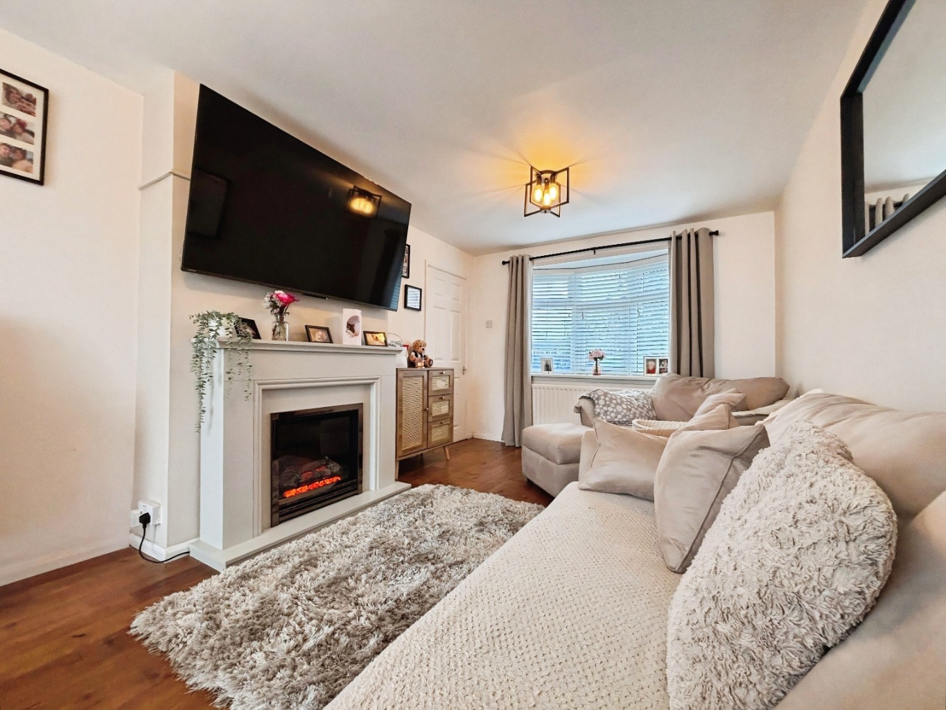 Spacious living area with electric fire
