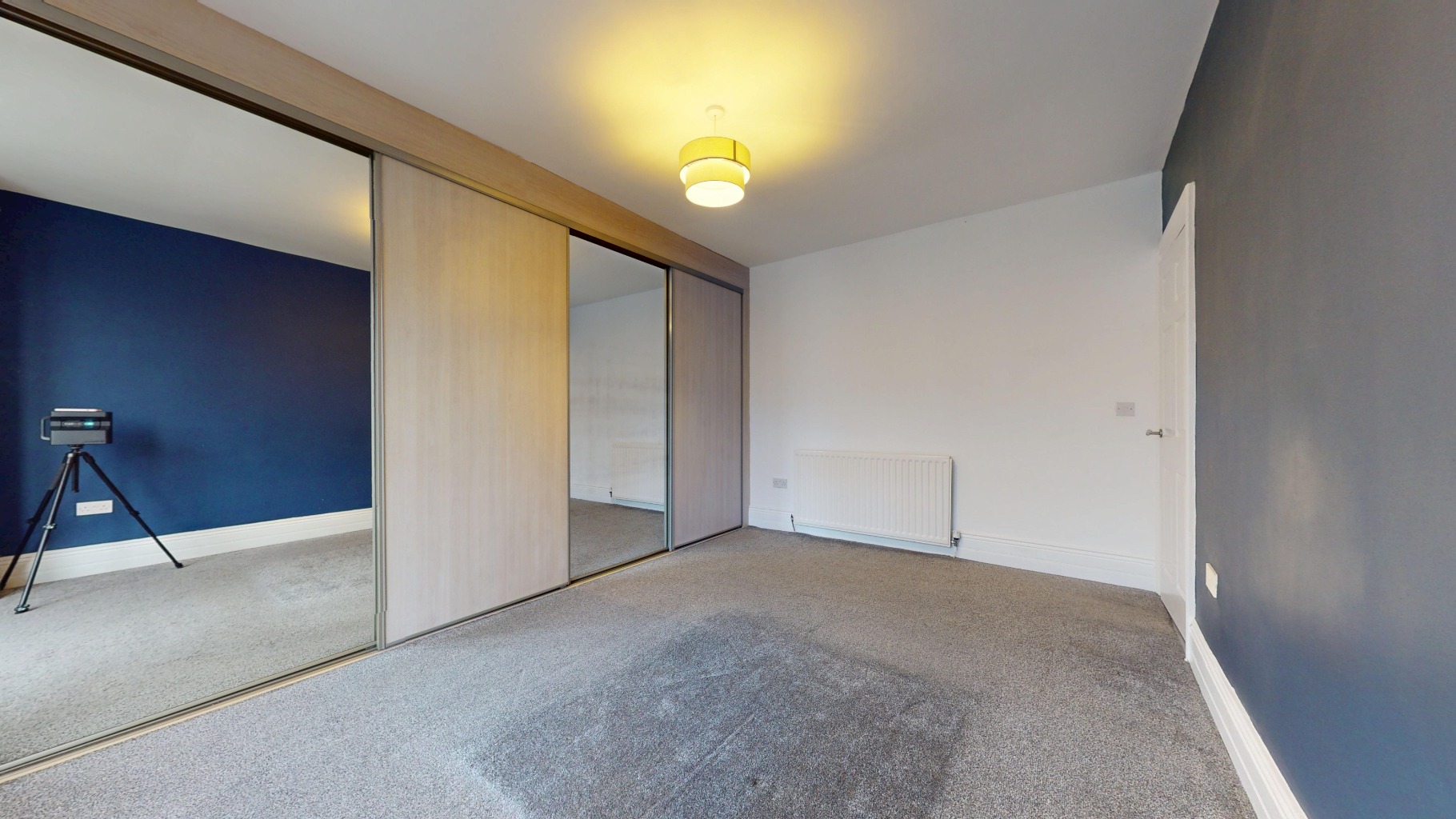 Large master bedroom with fitted mirrored wardrobes.